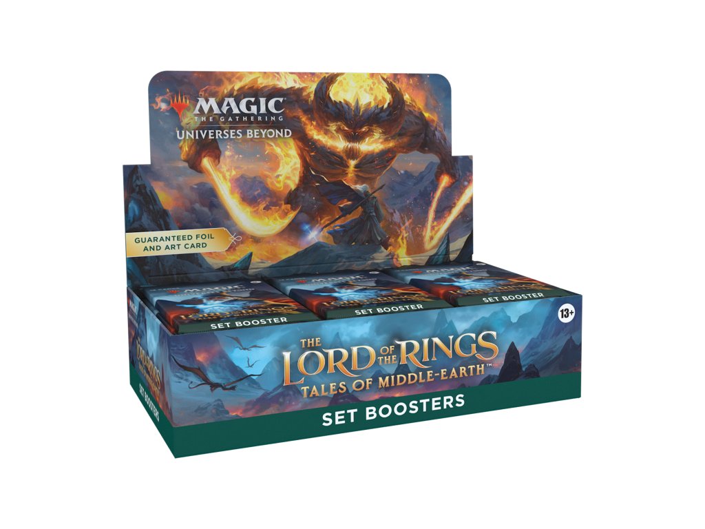 Magic the Gathering Lord of the Rings: Tales of Middle-earth je veľmi očakávaná sada kariet, ktorá prináša prostredie populárneho Tolkienovho fantasy sveta do kartovej hry Magic. Môžete sa tak tešiť nielen na karty známych lokácií a postáv, ale v edícii nájdete aj Prstene moci, ktoré predstavujú lákadlo pre nejedného zberateľa.